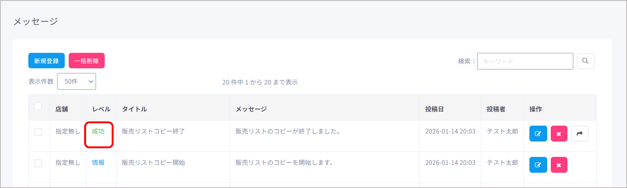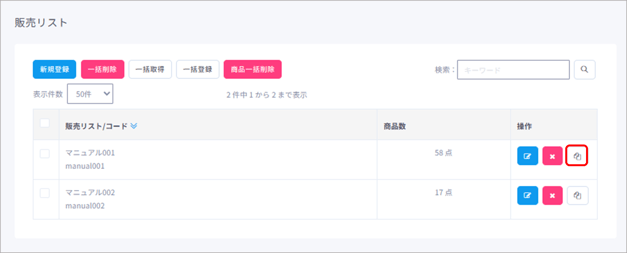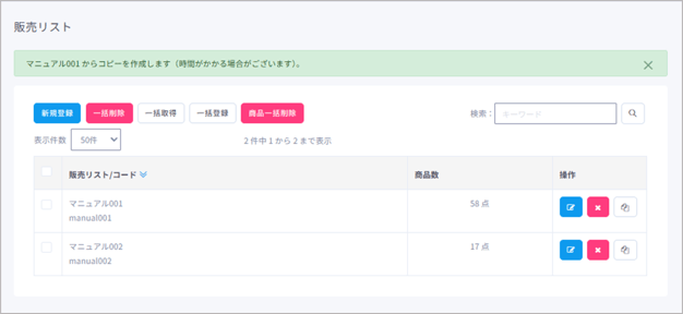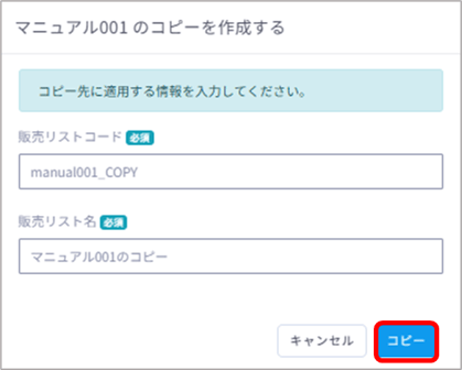 コピー元の販売リストの操作欄にある「コピー」ボタンをクリックします。