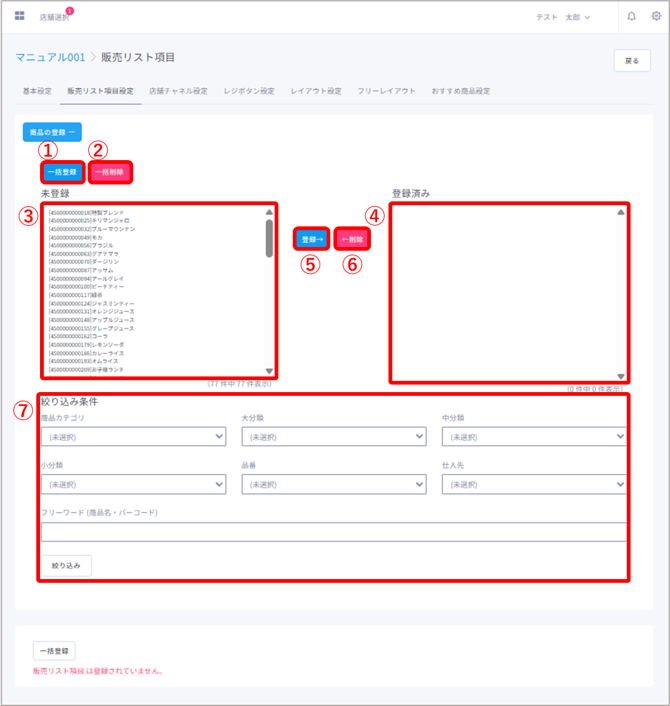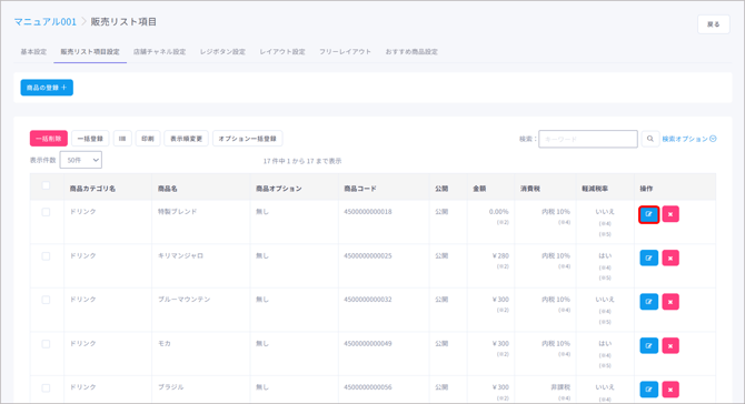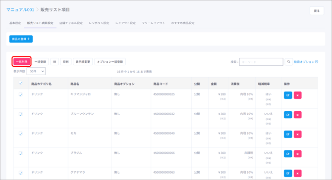 販売リストに手動で商品を登録・削除する際はこちらの方法を使用します。