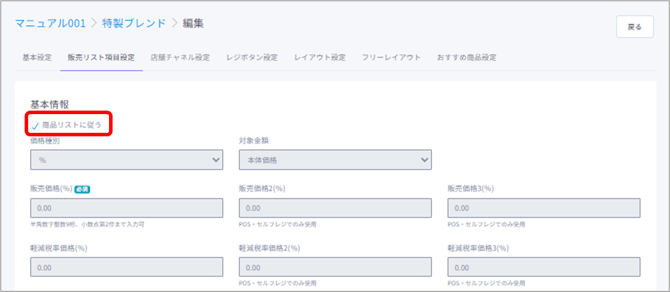 ▶販売リストを編集する(基本設定)