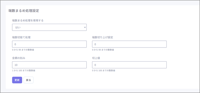 「0」と設定した場合は1から金額の刻みに設定した値までの金額を切上げ処理します。