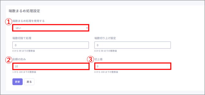 10円単位に丸める際には「10」、100円単位に丸める際には「100」と設定します。