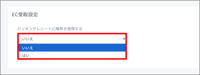 EC CASE1で使用するピッキングレシートに表示する名称を選択することができます。