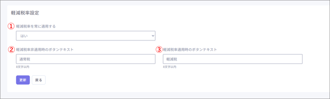 「はい」に設定した場合、商品リストで「軽減税率を使用する」が「はい」になっている商品は軽減税率単価で表示されます。