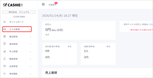 【マスタ管理】をクリックします。