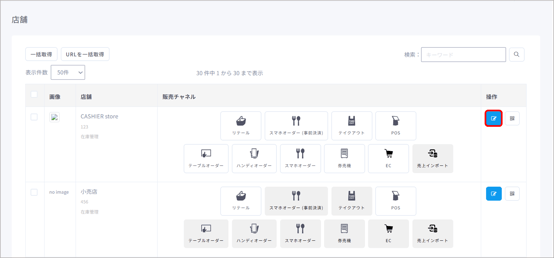 編集したい店舗チャネルの【編集】ボタンをクリックします。