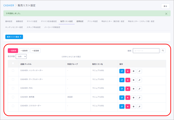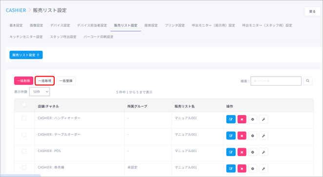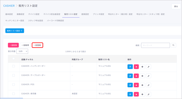 販売リスト設定