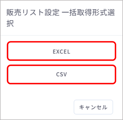 販売リストに紐づいている店舗チャネルの情報を、EXCEL・CSV形式でダウンロードでき