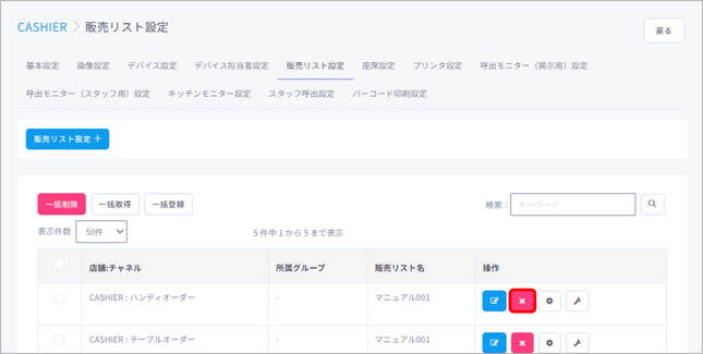 販売リスト・チャネルの削除を行う