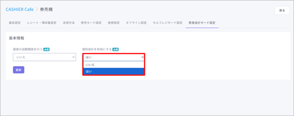 飲食会計モードを設定する