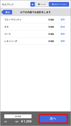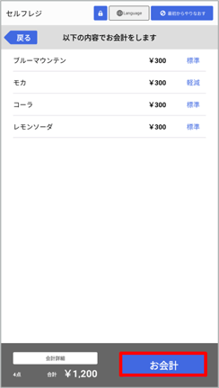 「お会計」ボタンをタップします。