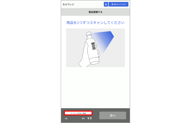「バーコードのない商品」ボタンをタップします。