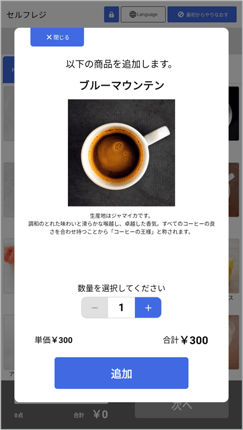 数量を選択後、「追加」ボタンをタップします。