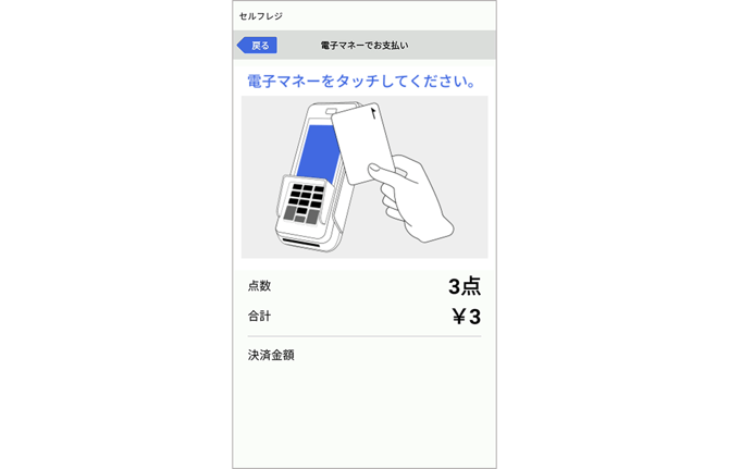 決済端末の指示に従い、電子マネー決済を行って下さい。